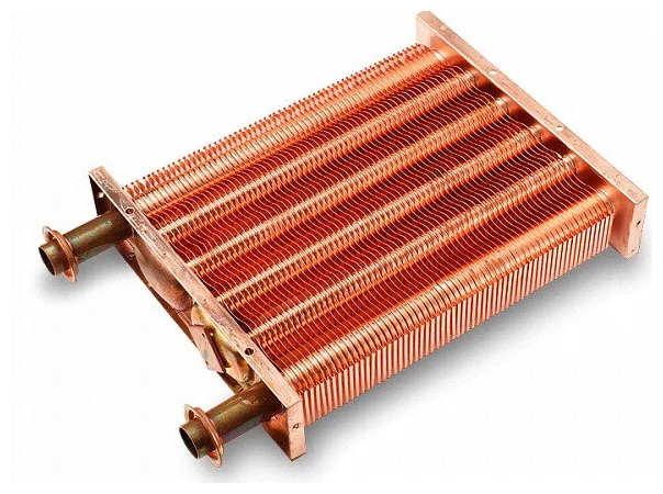 Медный теплообменник способен передавать большое количество тепла. Благодаря этому происходит быстрый и эффективный нагрев теплоносителя.